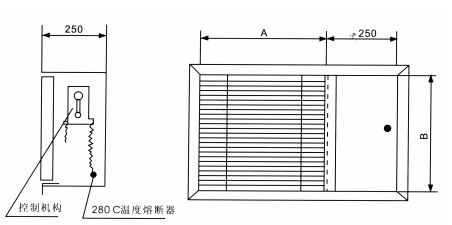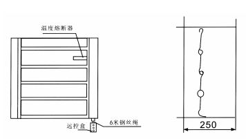 280℃溫度熔斷器自動關閉閥(防火),也可手動關閉,手動復位,可輸出聯動訊號,用排煙管道兼作通風管系統風機入口處。
