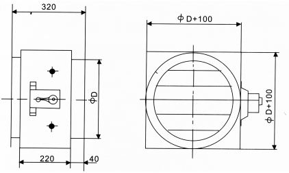 • 常閉,DC24V開啟排煙、手動復位、輸出開啟電訊號和風機聯鎖電訊號。