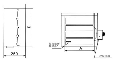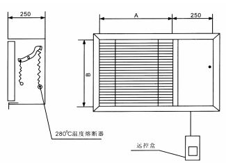 • 常閉,DV24V開啟,遠距離手動開啟,輸出開啟電訊號和風機聯鎖信號,遠距離手動復位,280℃重新關閉。
