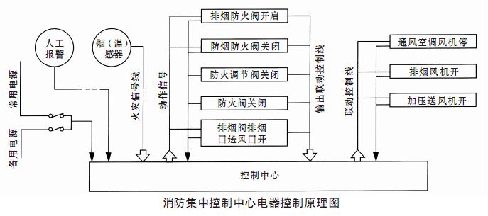 2、 動作原理:當火災發生時,煙感(或溫感)探頭發出火警信號給控制中心,控制中心接通DC24V電源,防火或排煙閥門 動作,同時微動開關動作,繼電器J工作使排煙風機或加壓風機D1起動,空調風機停止。