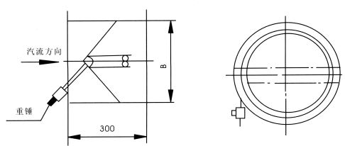 • 分為水平安裝(如圖有重錘)和垂直安裝兩種,垂直安裝閥葉不必帶重錘片。